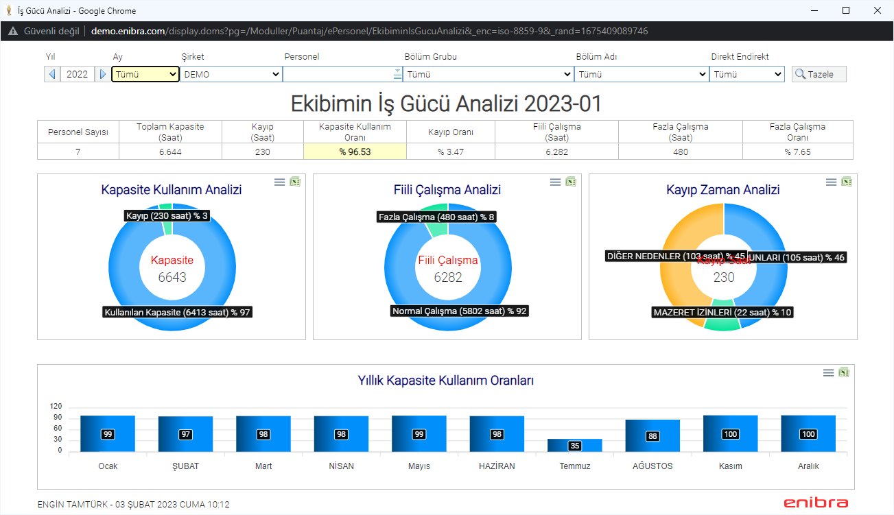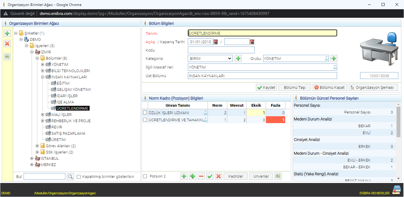 Personel Sayıları, Turnover, Norm Kadro, Organizayon Şeması gibi hazır raporlarla kullanıcılarımız excel vb. programlara ihtiyaç duymazlar.