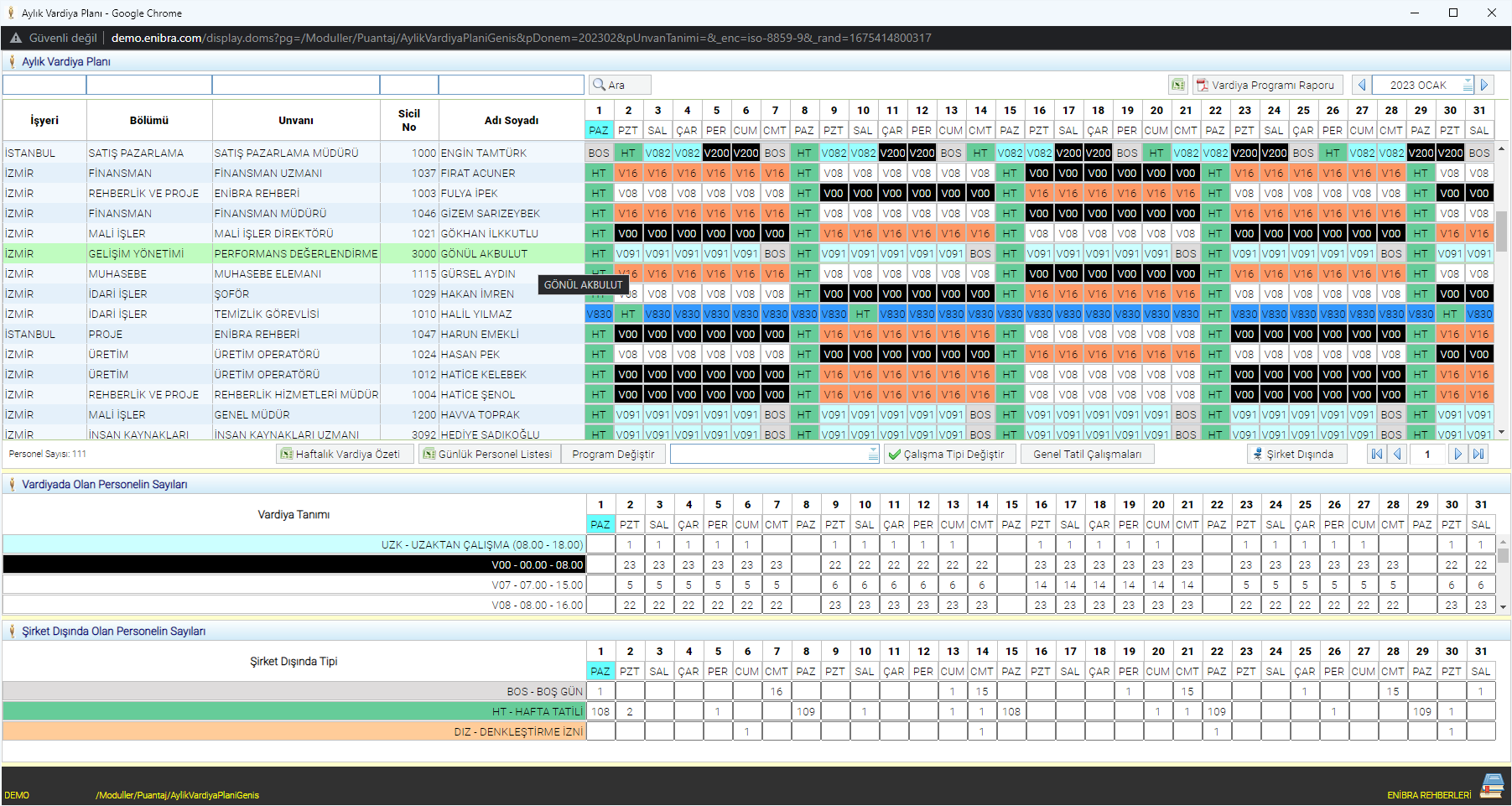 Personel içerisinde bulunduğu vardiya bilgilerini bu ekrandan görebilmektedir.